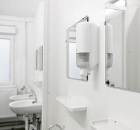 ELA sanitary containers are flexibly equipped with showers, WCs, urinals, sinks, mirrors and LED lighting.