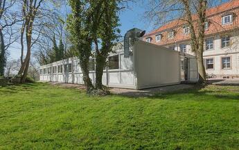 The specialised health clinic Fachklinik Rusteberg in Marth is a recent example of ELA modules being used in healthcare. The clinic helps patients with psychotherapeutic treatments and helps them re-integrate into society and work. Due to a renovation, ELA Container provided the clinic with 25 temporary rooms for one year, including 14 premium containers with their three metres of extra width. These were combined with another eleven quality all-rounders with standard dimensions to create 417 square metres of usable area.
