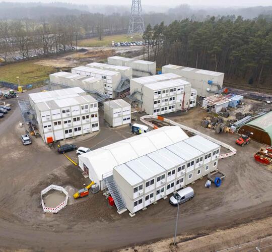 Looking for more temporary space in a smaller area? Not a problem for ELA container rooms – these can also be stacked threefold, as was the case most recently at Schmitz Cargobull’s subsidiary Cargobull Parts & Services GmbH in Altenberge, Germany. Available to rent or buy, the office containers have been built to expand the existing building for almost two years and are a great visual fit with the overall look.